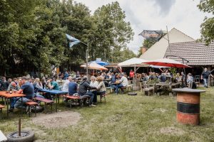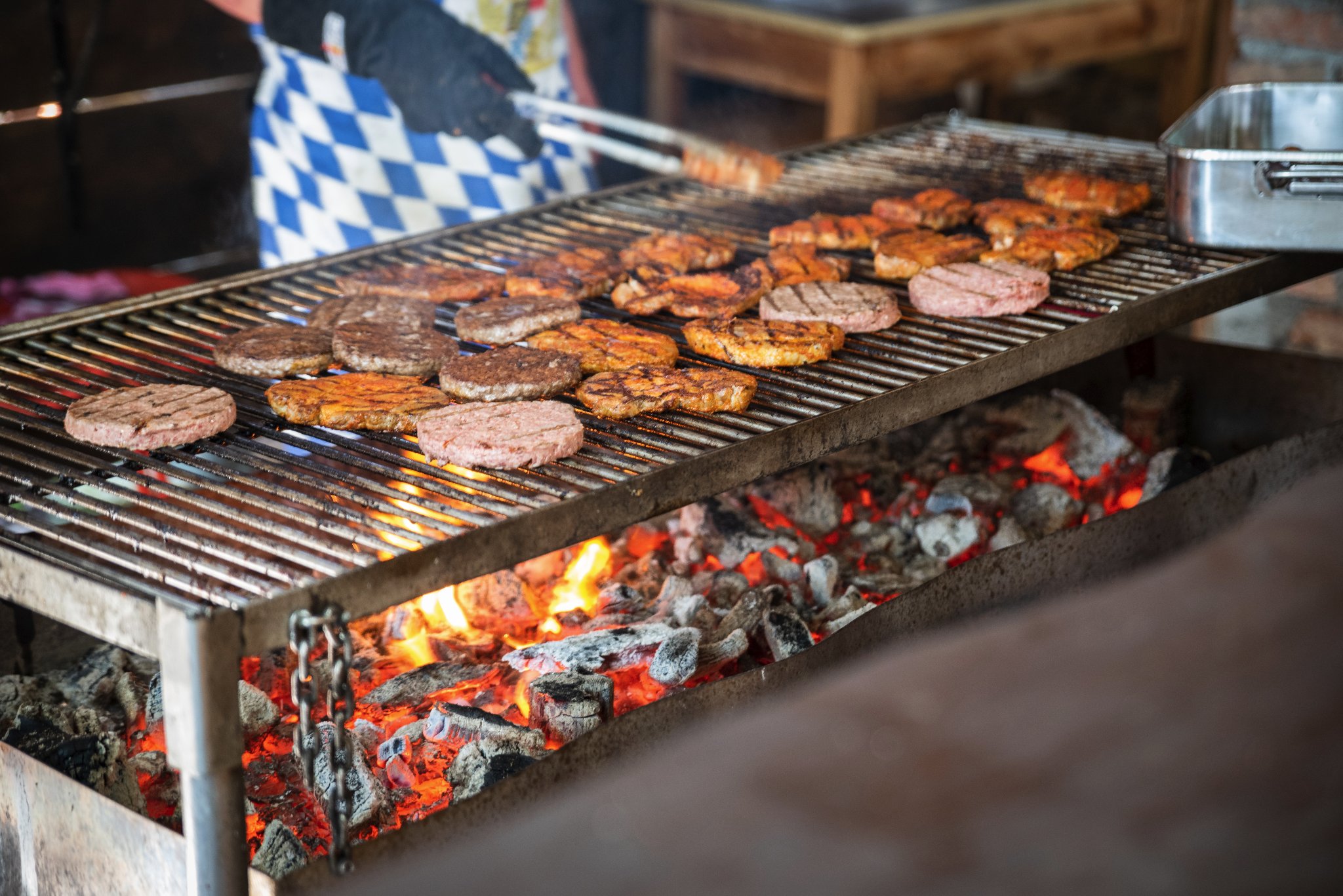 Danach gibt es Fleisch, Würstel und Burger vom Holzkohle Grill.